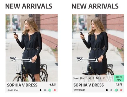 Rollover Quick Add, for busy users, enables quick additions to cart then compare and narrow down the selections later.