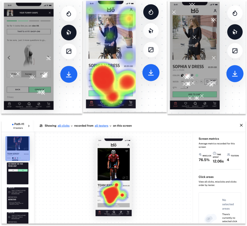 Although unmoderated user testing were at times confusing for users and in general did not offer as much insight compared to moderated interviews. However, there are definitely interesting findings such as heat map and click map that showed where user interaction took place. They were exactly where I would like them to. If the product is fully built out then the interactions would be interactable. These heat and click maps help validate the UI and UX design.