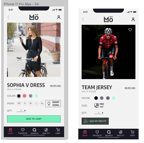Last screen of 3D Pro Fit sequence, UI design was at first confusing. During observed user testing, users mistakenly tapped “Add My Pro Fit” button for a functional button. To problem solve, I put the button in a circle and noticed a significant drop in user mistaken it for a functional button.